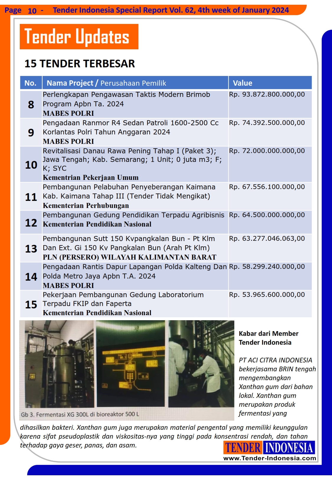 PT ACI CITRA INDONESIA bekerjasama BRIN tengah mengembangkan Xanthan gum dari bahan lokal. Xanthan gum merupakan produk fermentasi yang dihasilkan bakteri. Xanthan gum juga merupakan material pengental yang memiliki keunggulan karena sifat pseudoplastik dan viskositas-nya yang tinggi pada konsentrasi rendah, dan tahan terhadap gaya geser, panas, dan asam.